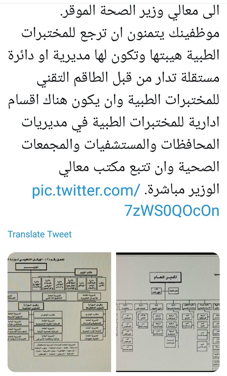 الهيكل التنظيمي لوزارة الصحة العراقية