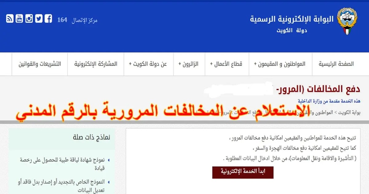 استعلام عن مخالفات المرور بالرقم المدني في الكويت بوابة الخدمات الإلكترونية لوزارة الداخلية الكويتية
