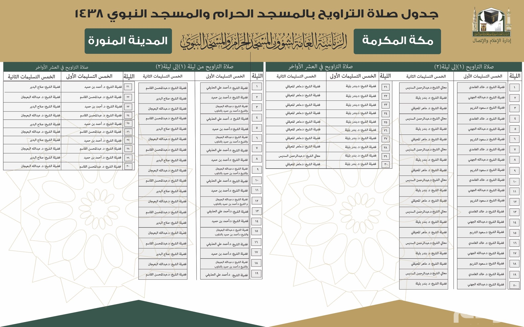 قائمة أسماء أئمة الحرم المكي لعام 1440 في شهر رمضان جدول صلاة التراويح في المسجد الحرام 2019 جدول.