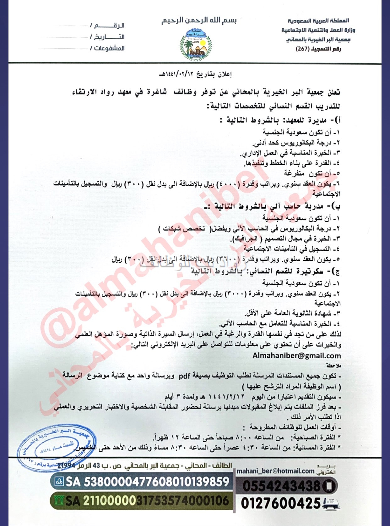 جمعية البر بالاحساء توظيف