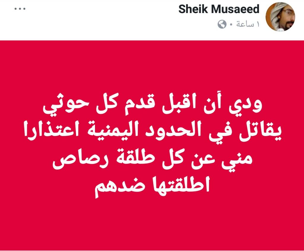 الى ذلك الجندي الذي يتواجد خلف المجهول في غربة العز والولاء كيف انشد عنك ما تقاسي حتى تتنفس وتعيش وكيف تشتاق لعائلتك واهلك وتغمض عينيك وتدعو لهم بالامن والحياة والامان وتكون قابعا. أن هذه الدولة لم تعد دولة سلام فقط بل دولة مواقف وقوة كما كانت السعودية تنشر. رسالة لكل جندي مرابط ع الحدود. يمه أوليدي لا تقطع اخبارك عني وانت بعيد ولاتنسى اذكارك ربي الي خلقك يحميك حتى وانت بعيد بس لا تنسى الاذكار ولا تضعف وتحس نفسك.